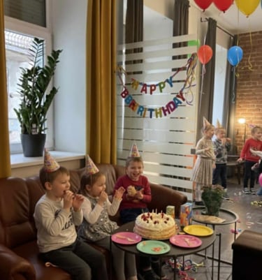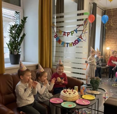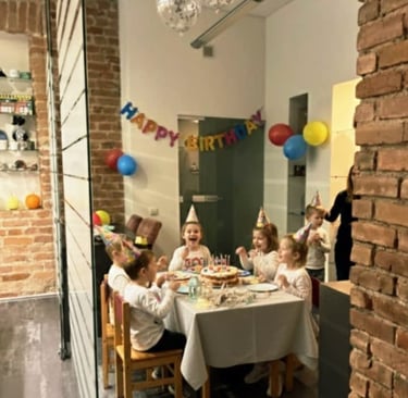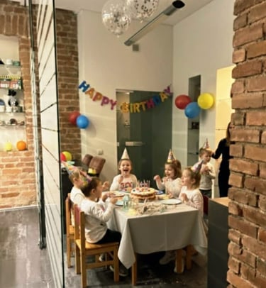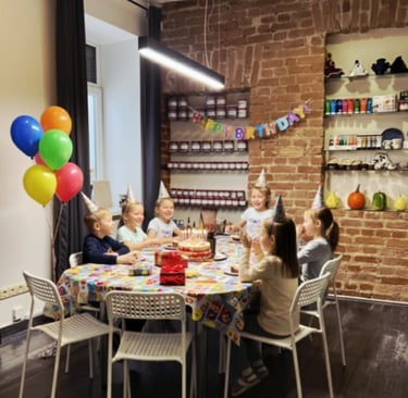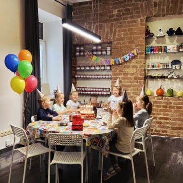 Kviečiame švęsti gimtadienį kūrybiškai – tarp spalvų ir draugų juoko. Šventės metu vaikai kuria ir išsineša ne tik prisiminimus, bet ir savo rankų darbelius.